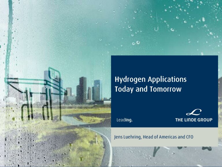Linde – Hydrogen Applications, Today and Tomorrow
